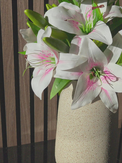 Buket med 10 stk. kunstige liljer i beige