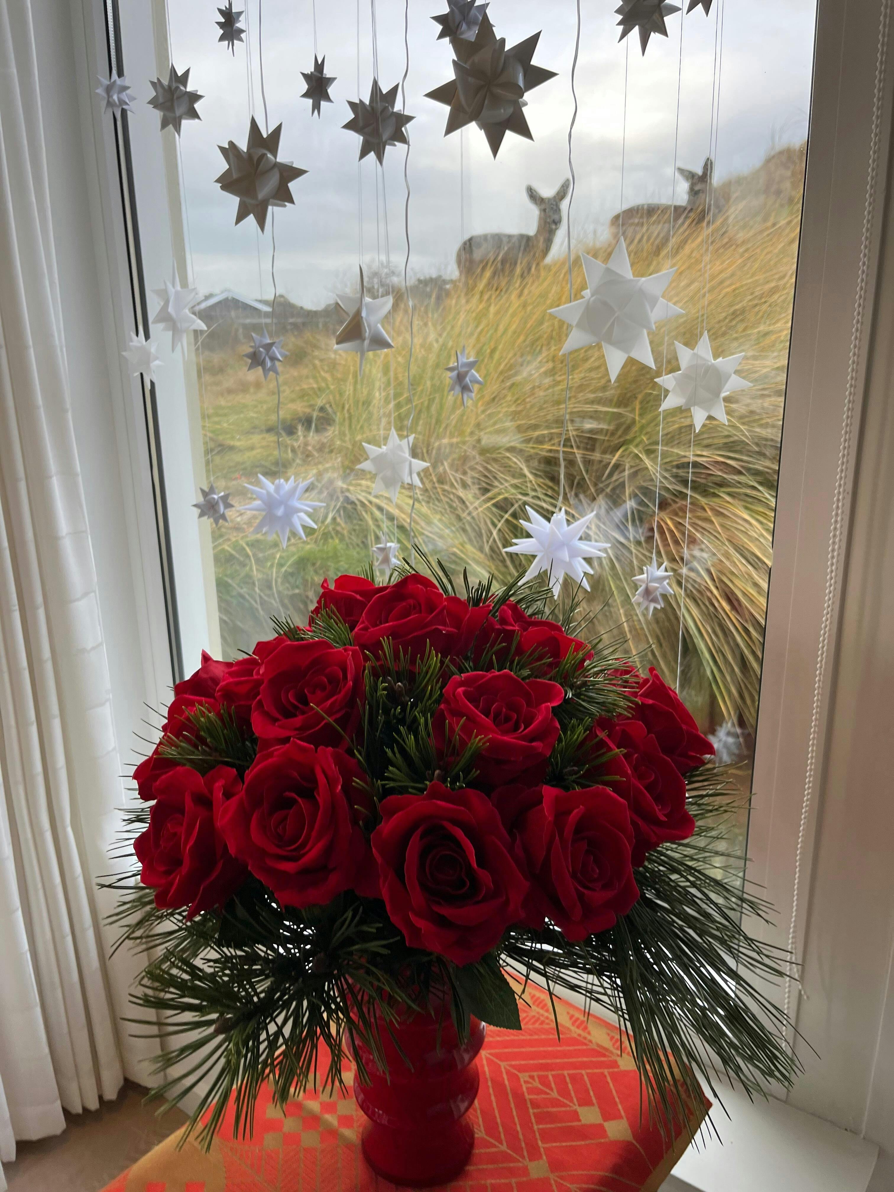 15 elegante, røde roser i naturtro kvalitet – perfekte til at skabe stemning og romantik, der varer.